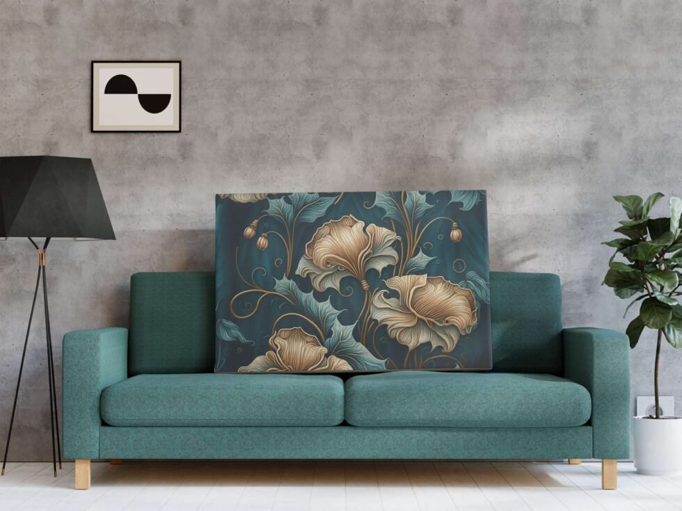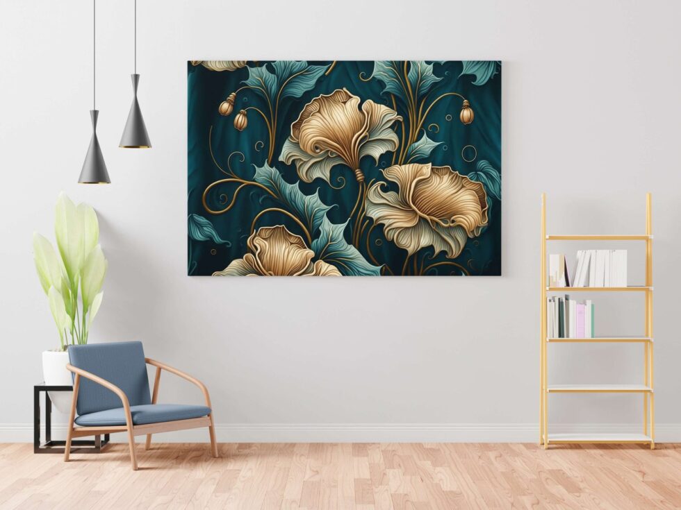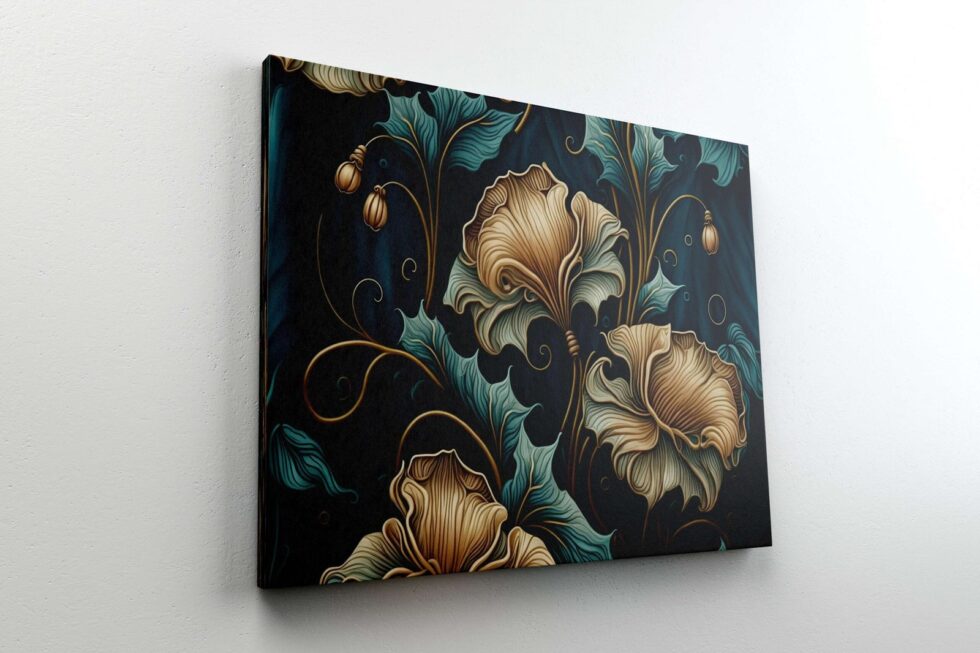 Whimsical garden flowers painted on a vibrant canvas for bright spaces.